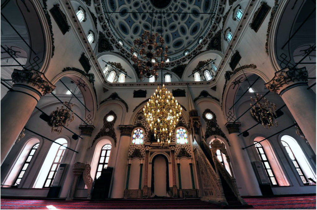 Yenilenen minaresi ile cami, klasik dönem Osmanlı camilerinin tipik özelliklerini taşımaktadır. Cami içindeki kalem işi süslemeleri, hat sanatının inceliklerinin sergilendiği panolar ve mihrap-minber işçiliği Türk sanat zevkinin en iyi örneklerindendir. Cami 1813, 1881, 1927 ve 1980 yıllarda onarım görmüştür.